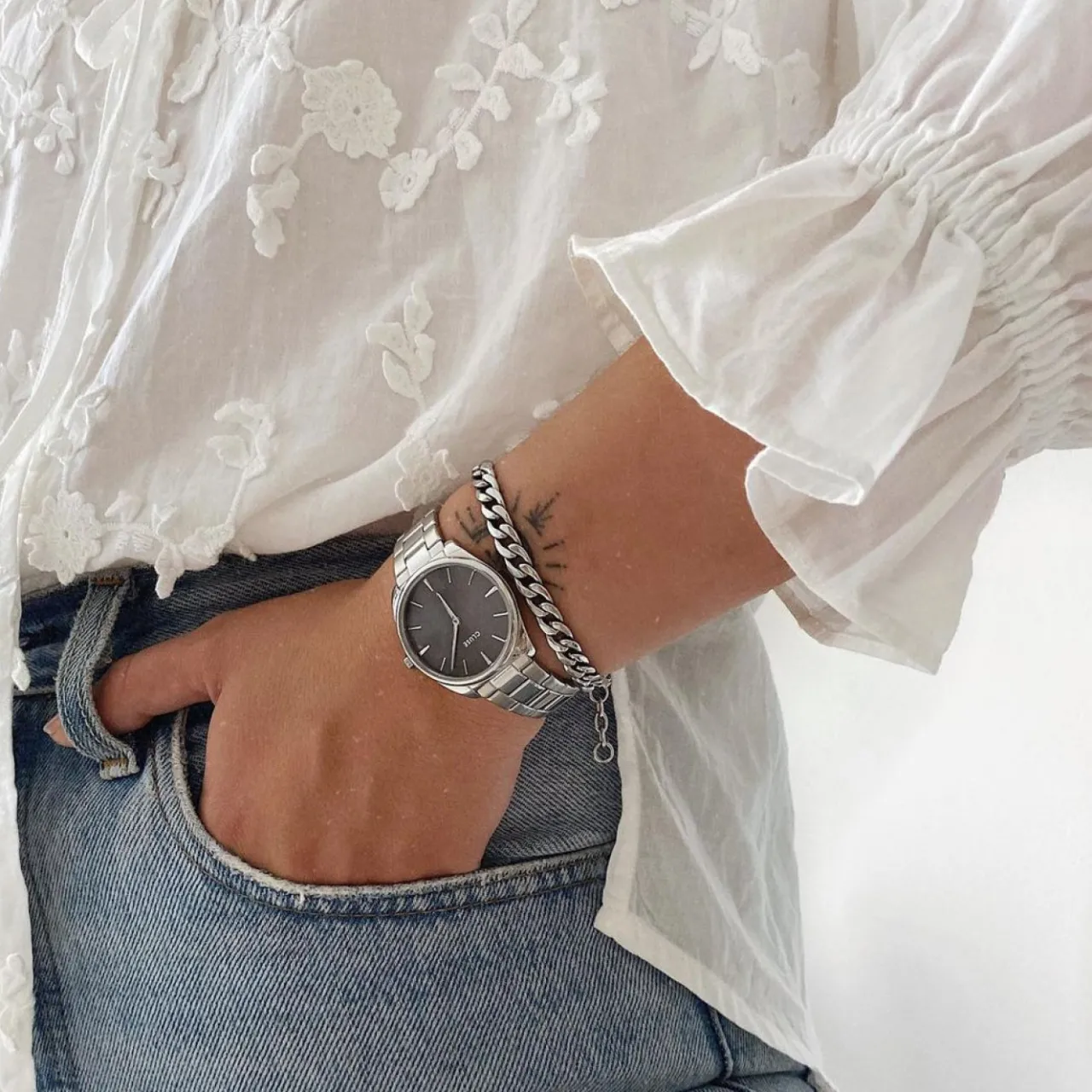 CLUSE Essentielle Flat Curb Chain Bracelet Silver Colour