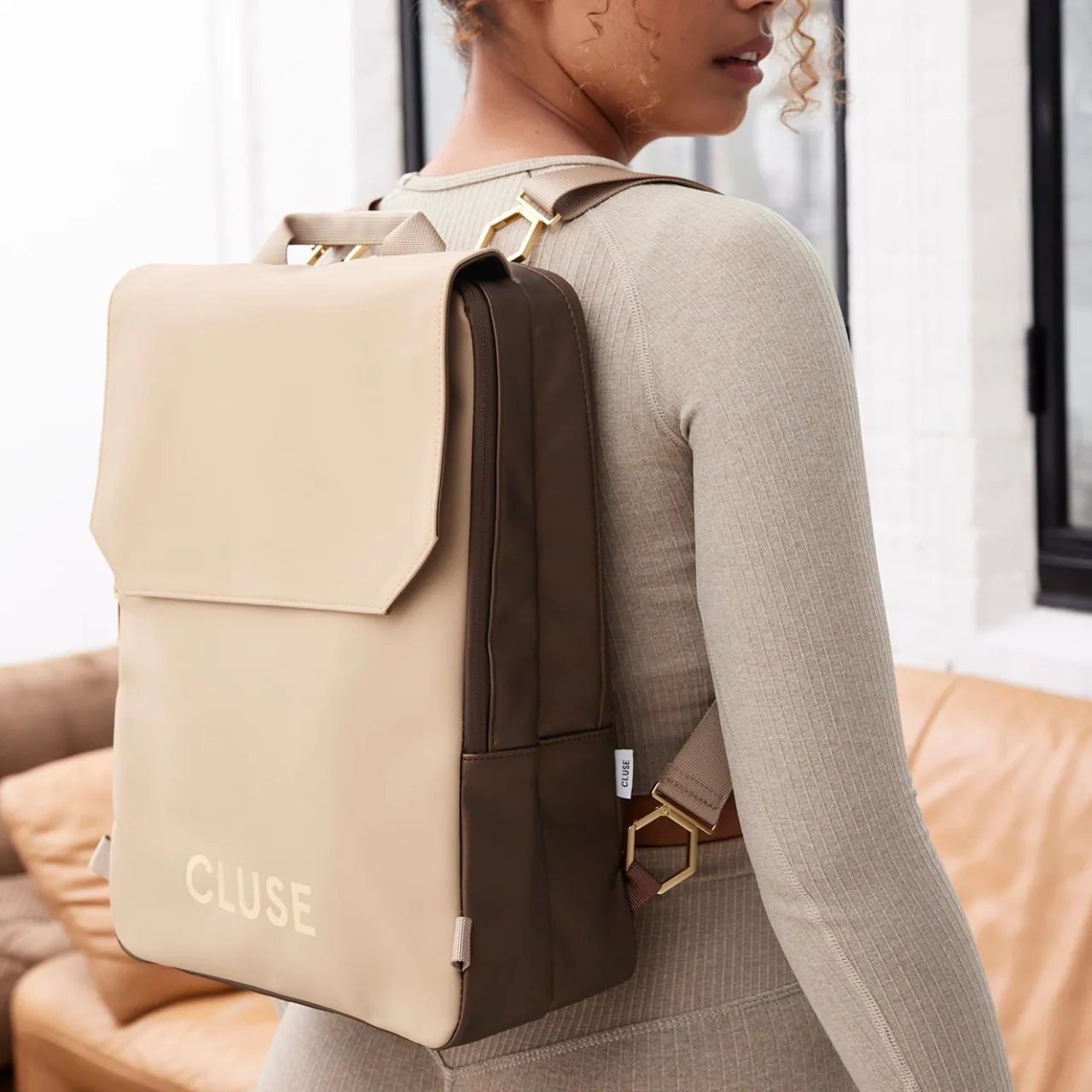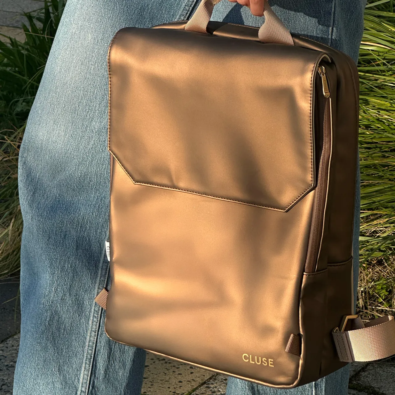 CLUSE Le Réversible Backpack, Metallic Brown Beige, Gold Colour
