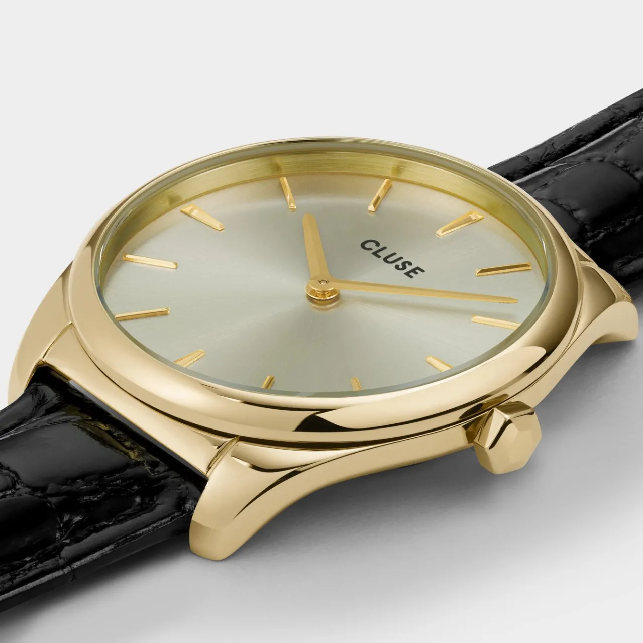 Femme CLUSE Féroce Petite Leather Black Alligator, Gold Colour