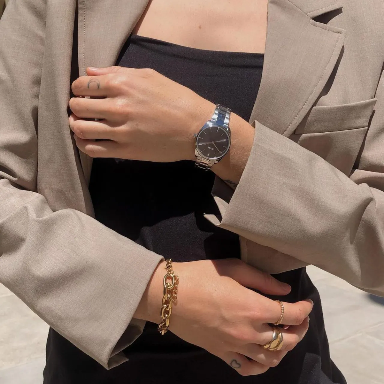 Cette montre au charme contemporain vous accompagne élégamment dans votre vie quotidienne et lors des occasions spéciales. La taille de la Féroce Petite a diminué, mais pas son amour du détail. Son boîtier de 31,5 mm est délicat et raffiné. Le cadran gris foncé est entouré d’un boîtier couleur argent et d’un bracelet en acier, pour une finition chic et intemporelle. Le bracelet de la montre Féroce Petite est interchangeable avec n’importe quel autre bracelet-montre CLUSE de 16 mm. Pour ajuster le bracelet, nous vous recommandons de vous rendre chez votre bijoutier ou horloger habituel.