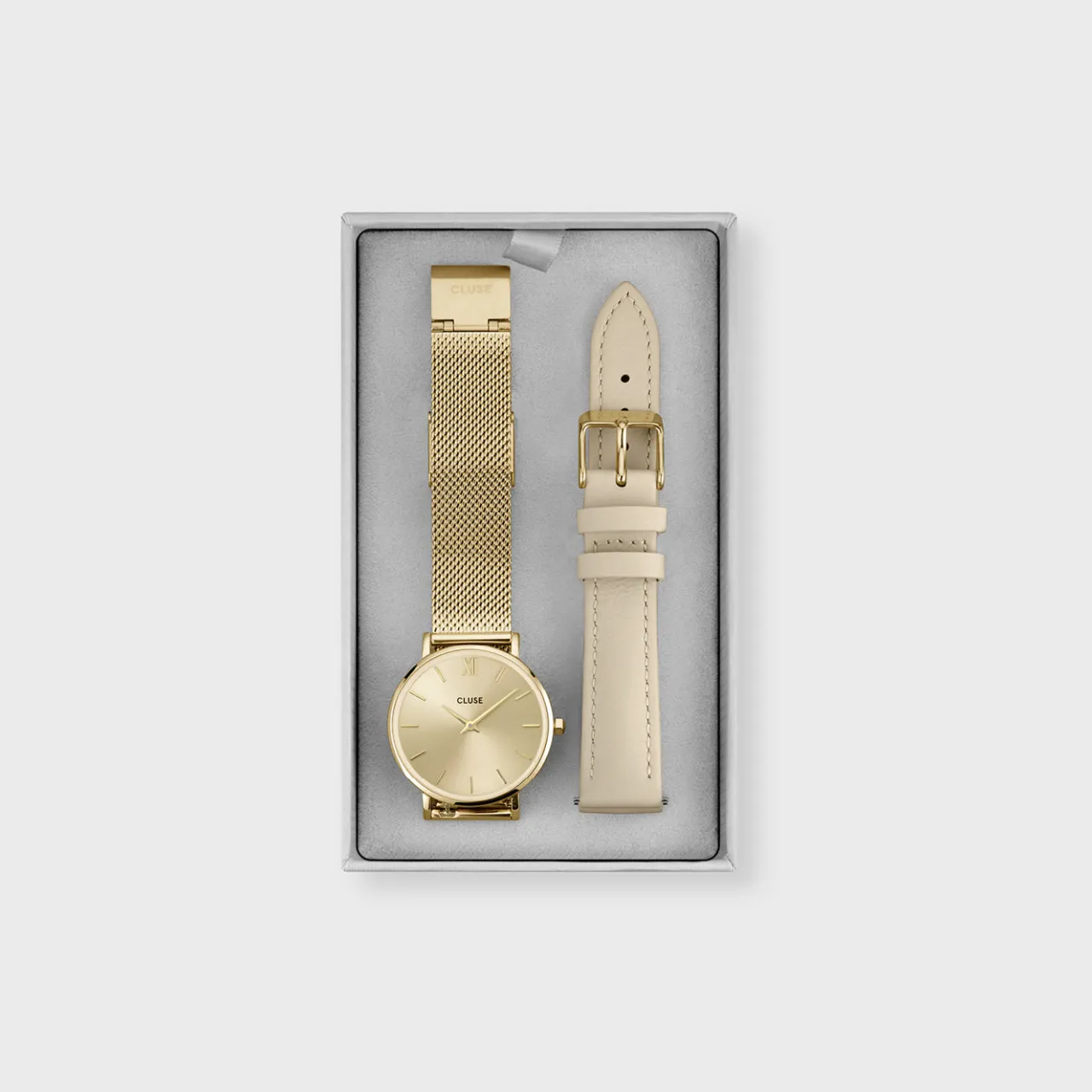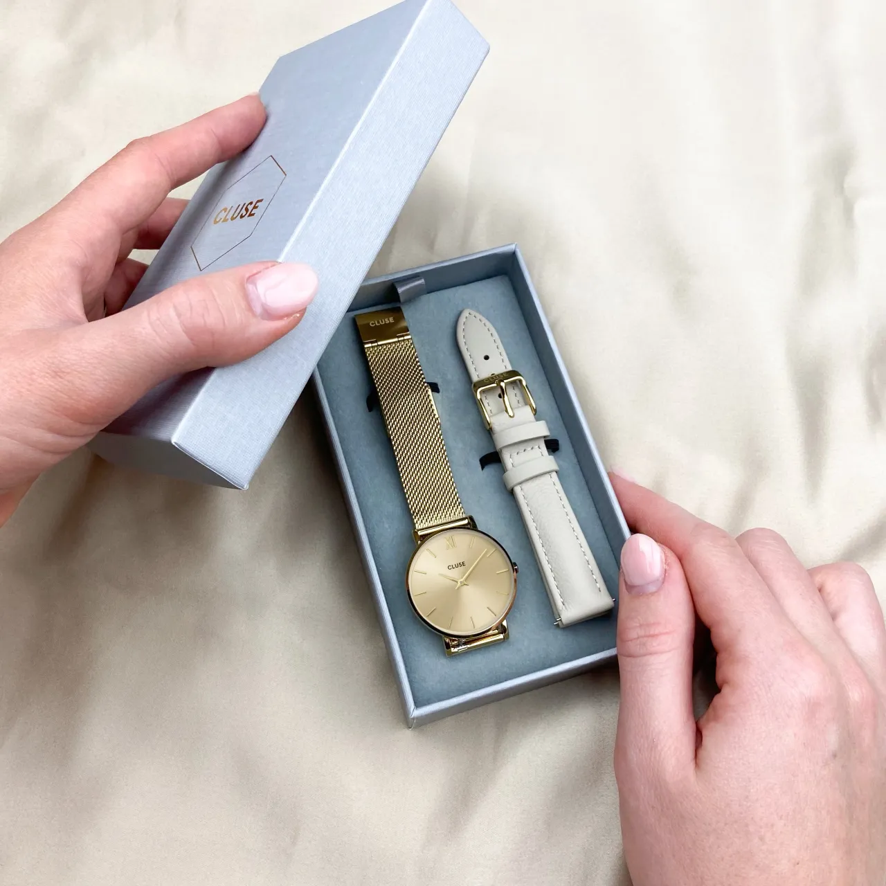 Femme CLUSE Gift Box Minuit Watch and Strap, Gold Colour