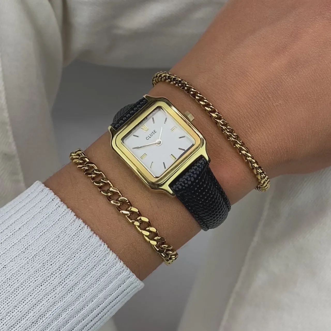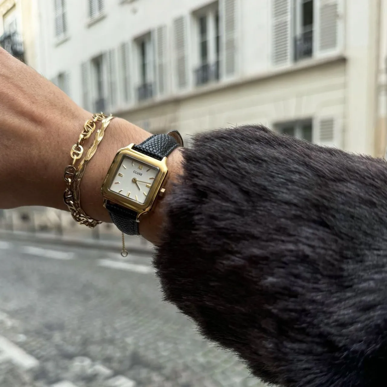 Femme CLUSE Gracieuse Petite Watch Leather, Black Lizard, Gold Colour