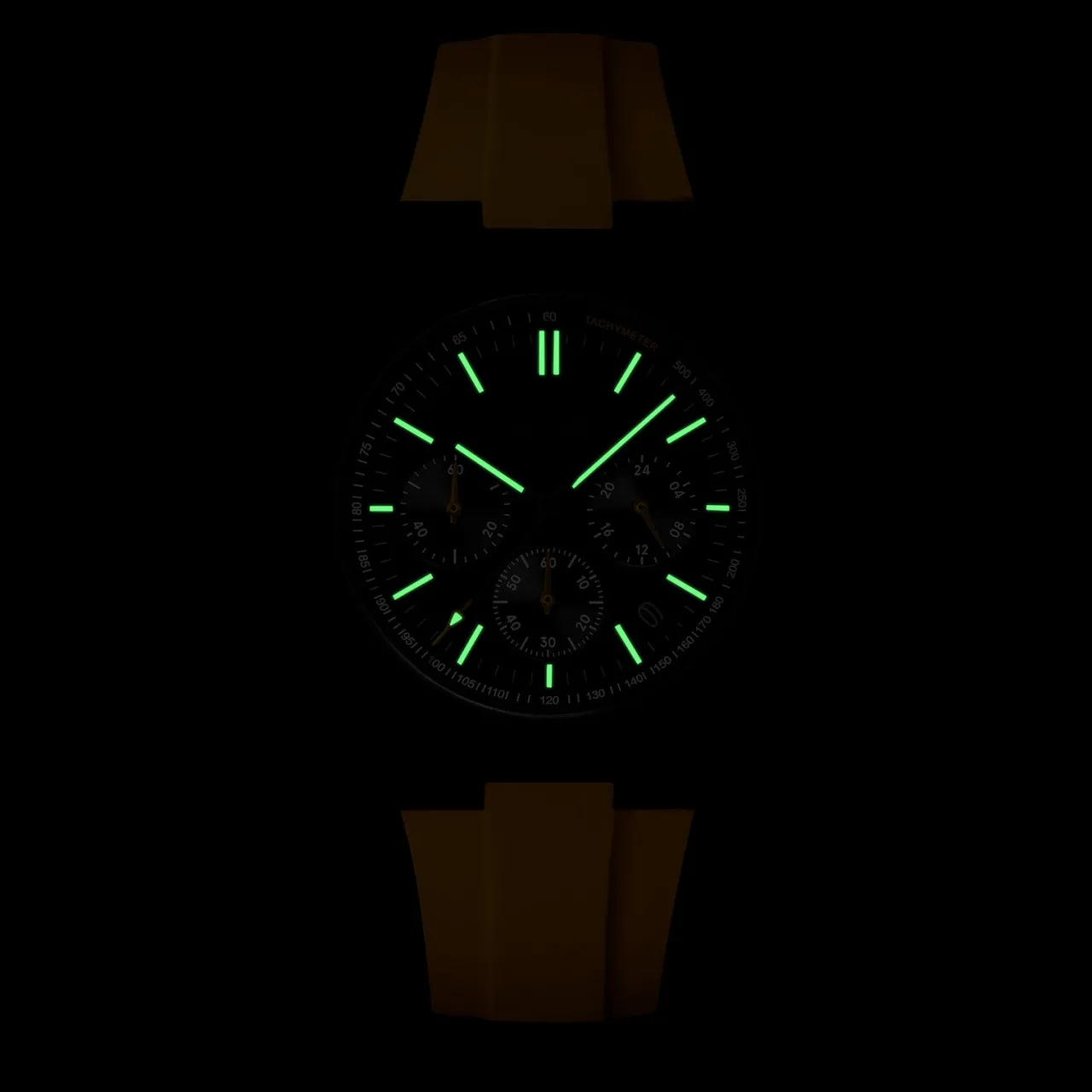 Masculine et multifonctionnelle Cette montre sophistiquée pour hommes Vigoureux Chrono est dotée d’un bracelet de montre intégré de 24 mm, en silicone jaune, d’un boîtier rond de 40 mm, de couleur noir, brossé et poli, et d’un cadran laqué noir avec trois sous-cadrans et un tachymètre. Une montre de sport d’une extraordinaire qualité, d’un grand attrait visuel, qui constituera le sujet de conversation par excellence. Le bracelet de montre en silicone est l’accessoire d’été idéal, offrant une touche de couleur, facile à nettoyer et confortable durant les soirées chaudes. Pour ajuster le bracelet de montre et changer la pile, nous vous recommandons de vous rendre chez votre bijoutier habituel.